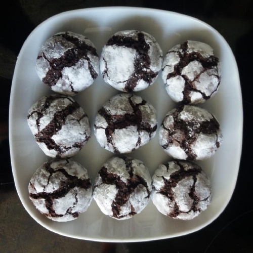 Tip the icing sugar into a deep sided tub or pudding bowl. Take a teaspoon of dough mix (about 20g) form a ball in your hand and drop them and roll in the icing sugar to completely coat repeat till tray is full allowing a few centimetres between each ball to allow them to spread.