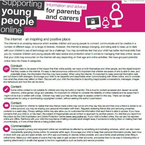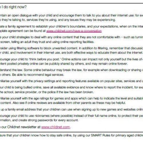 You may be interested in downloading the free Safer Internet Day Resources for Parents and Carers which is available at: saferinternet.org.uk/sid-parents.